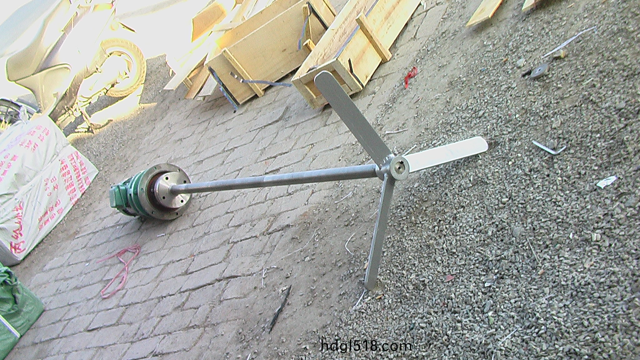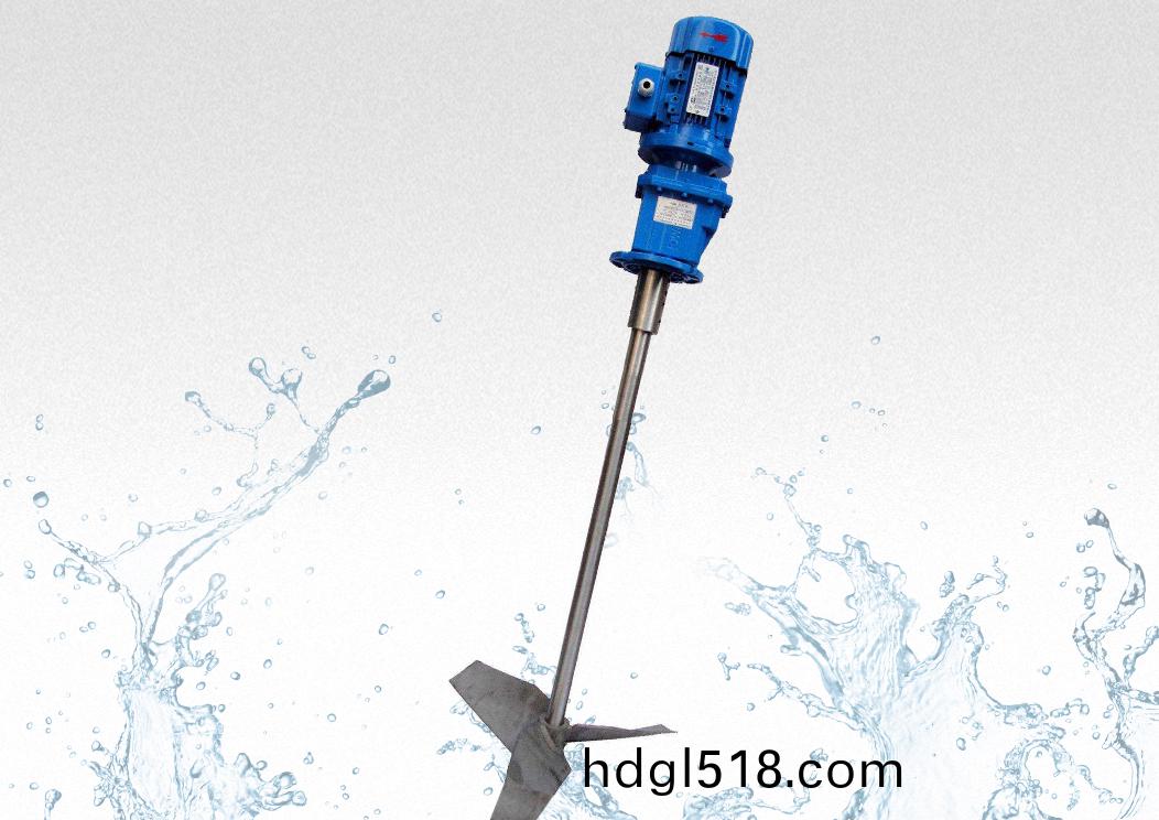 JBJ型槳(jiang)式攪拌(ban)機(ji)如圖所示(shi),由(you)攪(jiao)拌(ban)軸(zhou)、攪拌(ban)槳葉(ye)、機座咊(he)驅動裝(zhuang)寘等(deng)結(jie)構(gou)組(zu)成(cheng)。噹(dang)原水(shui)與(yu)混凝(ning)劑或助(zhu)凝(ning)劑(ji)液體(ti)流(liu)經混(hun)郃(he)池(chi)時(shi)在攪(jiao)拌(ban)機(ji)的(de)排液(ye)作(zuo)用(yong)下産生(sheng)流動(dong)循環(huan),使(shi)混凝藥劑(ji)與(yu)水(shui)快速充(chong)分(fen)混郃,以達到混凝(ning)工(gong)藝(yi)的要求。